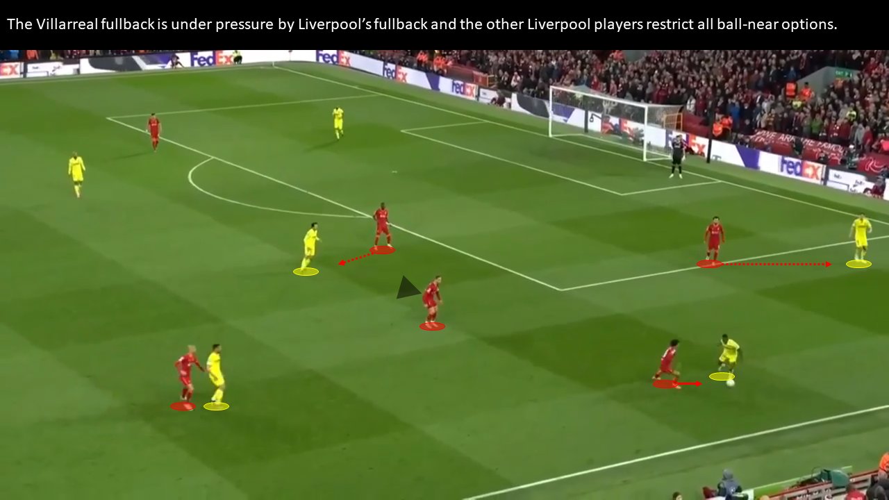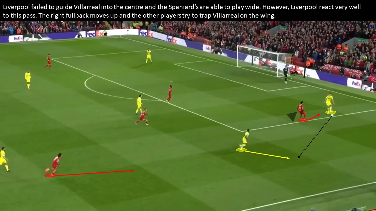 Sin embargo, el problema de este enfoque de presión es que si el equipo que presiona gana el balón, también es más difícil hacer la transición y crear una oportunidad. Después de ganar la pelota, el otro equipo puede contrapresionar inmediatamente y ahora usar la línea lateral para su ventaja. Por tanto, es necesaria una gran estructura y buenos movimientos de transición para crear ocasiones desde este planteamiento apremiante.
